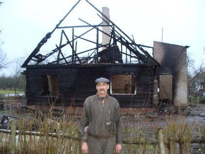 Kaimynų Ramanauskų po gaisro priimtas E.Šarkauskas į ugnies nepaliestą tvartą dabar sakė nueinantis tik pašerti ten likusių ožkų, triušių ir šunų.