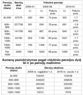 Analizuojant ir lyginant 2006 m. sausio mėnesio bei 2009 m. rugpjūčio mėnesio senatvės ar invalidumo vidutines pensijas bei skaičiuojant, kokios jos būtų po sumažinimo, buvo nagrinėjami tų pačių asmenų duomenys.