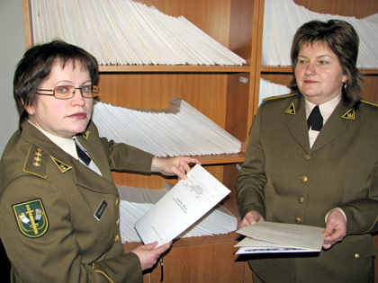 Interesantai kabinete kol kas randa dvi uniformuotas moteris – Karo prievolės administravimo tarnybos (KPAT) prie Krašto apsaugos ministerijos Kauno karo prievolės centro teritorinio Vilkaviškio skyriaus ilgametę darbuotoją viršilą Iloną Paulauskienę ir nuo praeito birželio dirbančią kapitonę Ireną Šimanskaitę.