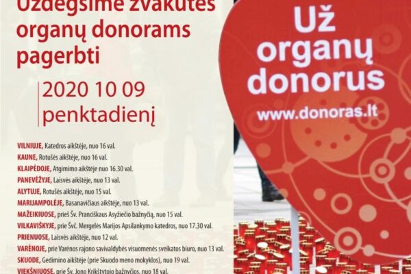 Šiais metais žvakutės donorams pagerbti liepsnos Vilniuje, Kaune, Klaipėdoje, Panevėžyje, Alytuje, Marijampolėje, Mažeikiuose, Prienuose, Varėnoje, Skuode, Viekšniuose, Valkininkuose, Marcinkonyse ir, žinoma,