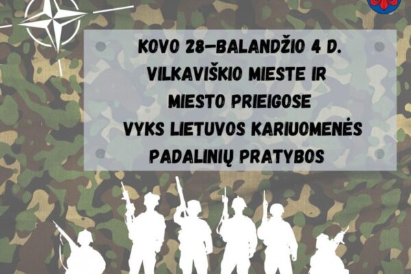 Kovo 28–balandžio 4 d. Vilkaviškio mieste ir miesto prieigose vyks Lietuvos kariuomenės padalinių pratybos.