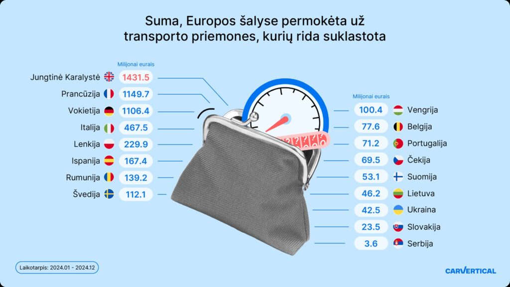 Įvertinus „carVertical“ tikrintų automobilių skaičių, vidutinę jų vertę ir ridos klastojimo mastą konkrečioje šalyje, Jungtinė Karalystė kasmet dėl šios problemos praranda apie 1,4 mlrd. eurų, Prancūzija – 1,14 mlrd. eurų, o Vokietija – 1,1 mlrd eurų.