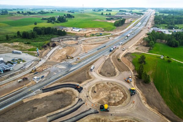 Nuo darbų pradžios praėjusiais metais, iki šiol jau nutiesta apie 75 proc. pagrindinio keturių eismo juostų magistralinio kelio, įrengta 60 proc. jungiamųjų kelių, o žiedinių sankryžų įrengimas pasiekė 50 proc. Taip pat atlikta daugiau nei pusė kitų infrastruktūros sprendinių – nuo lietaus nuotekų tinklų iki techninių inžinerinių sistemų.