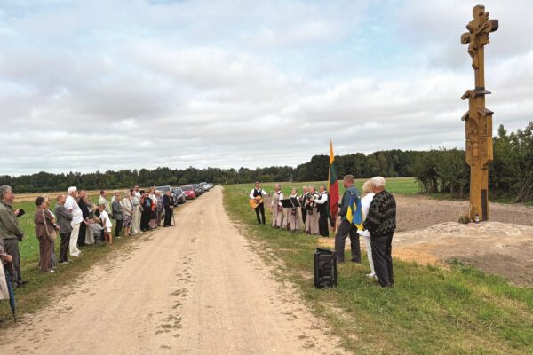 Į kryžiaus šventinimo ceremoniją susirinko Lietuvos ir Ukrainos vėliavomis nešini žmonės, jiems koncertavo kapela „Alksnė“ (vad. Linutė bei Ramutis Skrinskai).