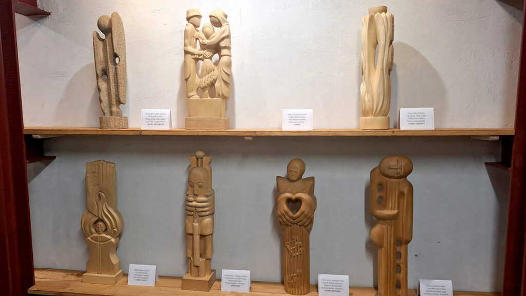 Nors pilviškietis Antanas Mykolaitis – tylus ir kuklus žmogus, jo drožiniuose atsiveria nepaprastai turtingas ir jautrus pasaulis. Parodoje „Laikas ir žmogus“ pristatomos 39 skulptūros. Menininkas apie jas kalbėjo šiltai ir nuoširdžiai, prisimindamas kiekvieno darbo gimimo istoriją. Šalia skulptūrų lankytojai gali perskaityti ir autoriaus eiles – jos subtiliai papildo kūrinio pavadinimą bei kuriamą nuotaiką.